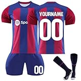 FCB Barcelona Camiseta de Fútbol Personalizadas para Hombres y Niño, equipación Fútbol DIY Nombre Número con Conjunto Top Pantalón Corto y Calcetines